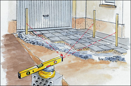 Einmessen von z. B. Einfahrten, Gehwegen, Bodenflächen und Gefällen |